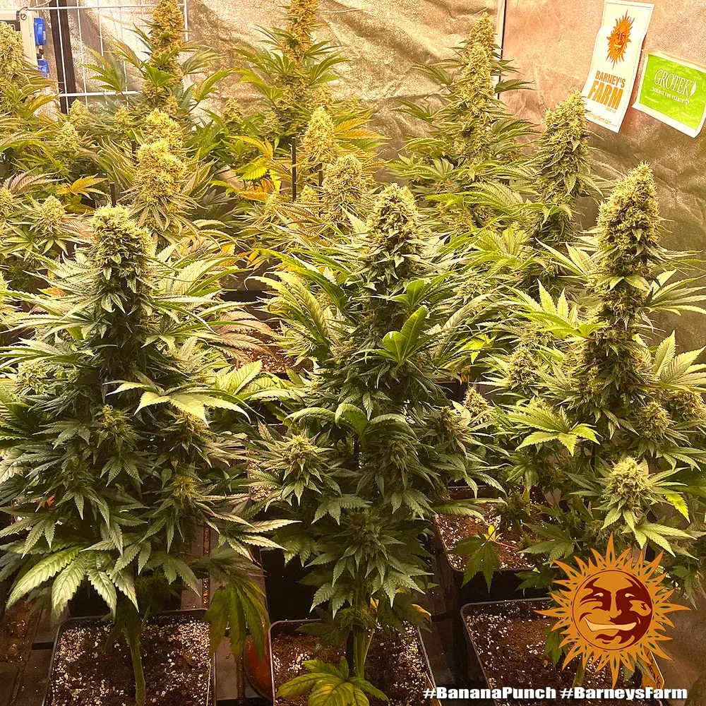 Banana Punch is a strong sturdy plant and extremely versatile to a wide range of growing techniques, indoors reaching a perfectly manageable height within a few weeks whilst outdoors you can expect something very special reaching maturity towards the end of September. The breath-taking colours and aromatic traits of our OG Kush descendant Purple Punch were not lost during the breeding process, as our Banana Punch Strain evolves, beautiful deep purples and oranges emerge in contrast to the dark vibrant shades of green. With the onset of flowering its branches rapidly take shape, its olive shaped clusters continually expanding and multiplying, becoming densely covered with bright amber pistils and golden coating of sticky resinous trichomes. The most abundant terpene in our Banana Punch is limonene, followed by Pinene, myrcene and caryophyllene.