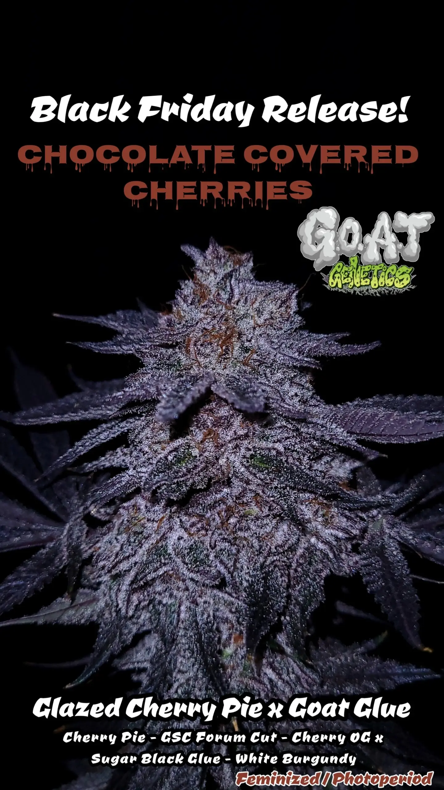 Just in time for the holiday season, Chocolate Covered Cherries will be available on Black Friday at all Goat retailers. Don’t miss out on this scrumptious strain; check the link tree in the page description to find a retailer near you. Get ready to treat yourself to a cannabis experience that’s as delectable as it sounds!