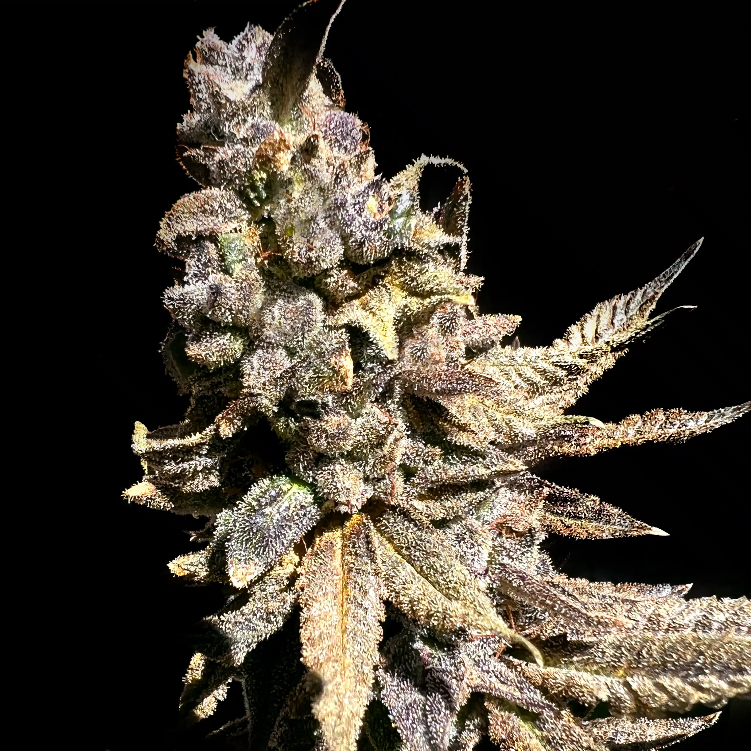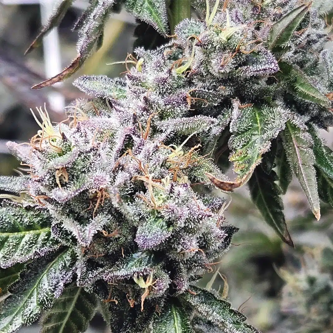 Its chunky buds are light green with beautiful purple undertones, that are glistening with a super coating of sticky frost.