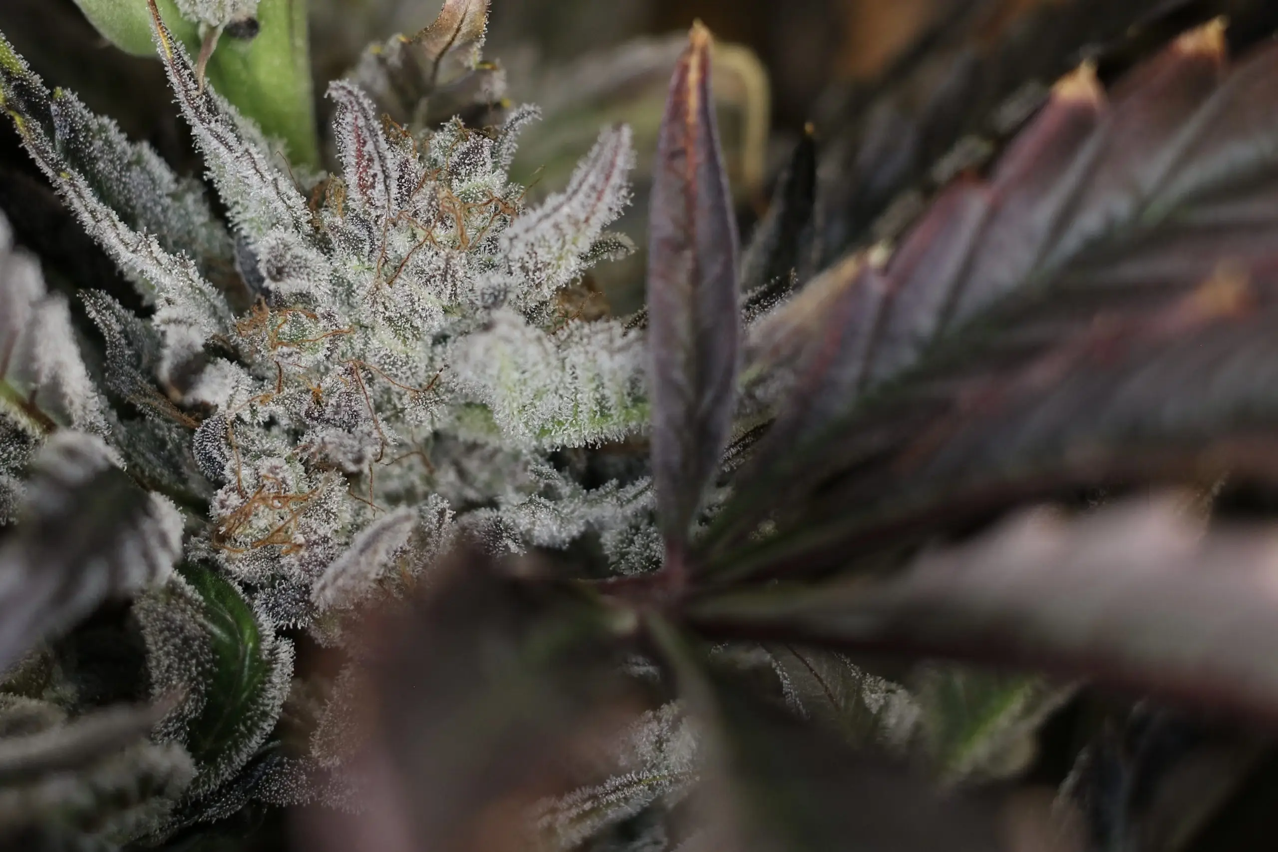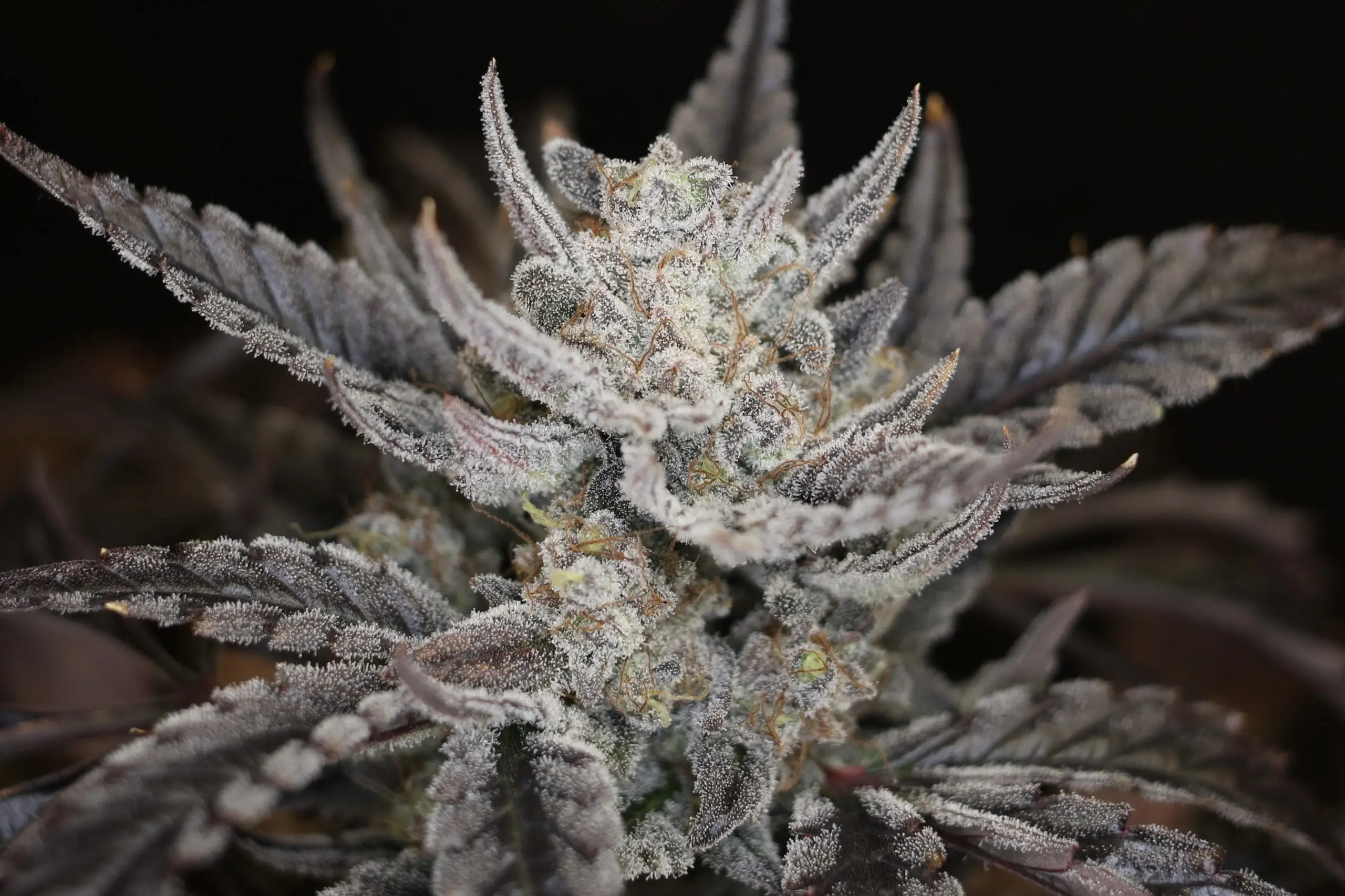 • Heavy trichome coverage on dense, rounded flowers