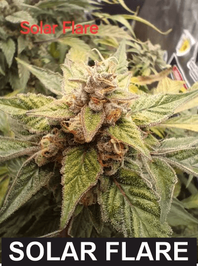 SOLAR FLARE is a feminized autoflower hybrid of GMO Auto x Wedding Cake Auto from Multiverse Genetics. It produces dense, frosty buds with heavy trichome coverage and a sweet, fuel-forward aroma. Flowering takes approximately 75 days, with vigorous growth and good mold resistance. The 20/80 Sativa/Indica ratio provides a deeply relaxing body high with a gentle cerebral uplift. Buds offer high visual and bag appeal, making them ideal for personal use or sale. SOLAR FLARE delivers well-rounded, potent effects suitable for a variety of consumers. The strain thrives in indoor and outdoor environments and is easy to cultivate. Yield is average but complemented by exceptional quality and aroma. Effects are calming, enjoyable, and long-lasting. SOLAR FLARE is perfect for growers seeking flavorful, high-quality, and reliable autoflower cannabis.