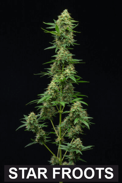 STAR FROOTS is a feminized autoflower hybrid of Sour Gas Auto x Haze Auto from Multiverse Genetics. Buds are vibrant lime green with orange pistils and heavy resin coverage, producing sweet, fruity, and gas-forward aromas. Flowering averages 70 days, offering dense buds, excellent mold resistance, and satisfying yields. The Sativa/Indica lineage provides a balanced experience with both relaxing and uplifting effects. STAR FROOTS is perfect for growers and consumers looking for flavorful, visually appealing, and high-quality autoflower cannabis.